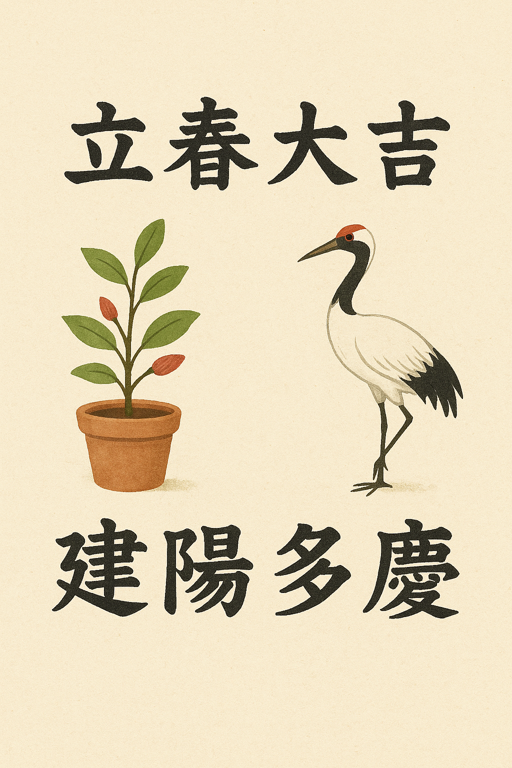 ‘입춘대길(立春大吉)’은 “봄이 시작되니 큰 복이 깃들기를” 바라는 말이에요. ‘건양다경(建陽多慶)’은 “밝고 따뜻한 날이 많고, 경사스러운 일들이 가득하라”는 뜻이랍니다. 즉, 새로운 시작을 밝게 열어가길 바라는 마음이 담겨 있죠.
