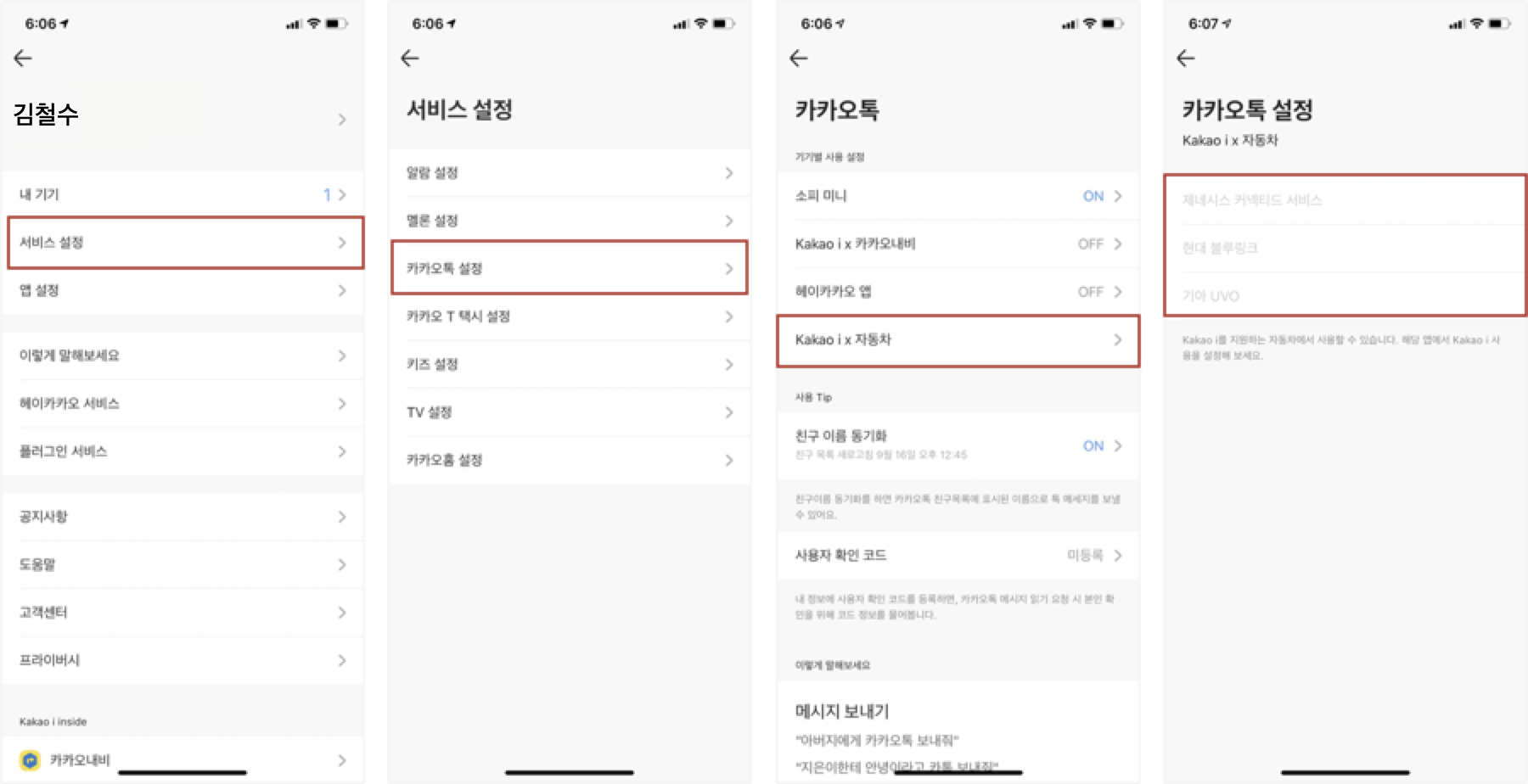 - 카카오 계정과 AI 스피커 연동 상태 확인