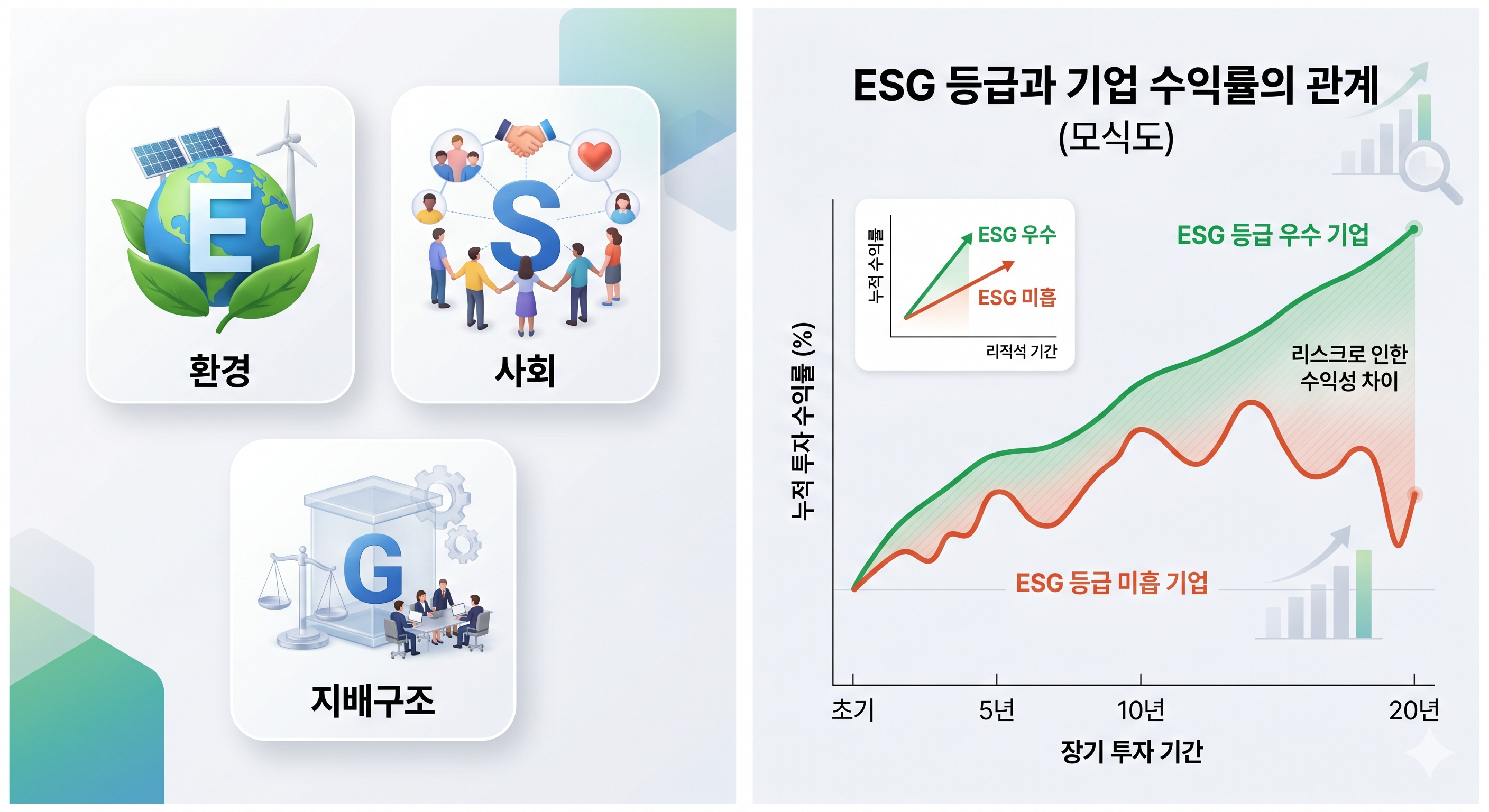 예전에는 기업의 가치를 평가할 때 '얼마나 돈을 잘 버는가(재무적 지표)'만 중요했습니다. 하지만 이제는 다릅니다. 돈은 잘 벌어도 환경을 파괴하거나 갑질을 하거나 경영진이 불투명하면 투자자들은 가차 없이 등을 돌립니다.